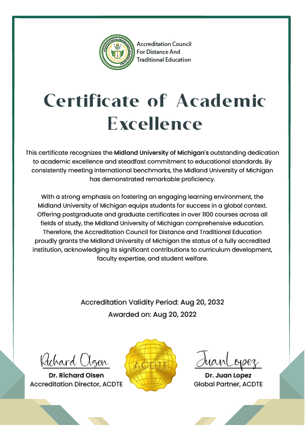 ACDTE is a prominent accrediting and credential evaluation body in the U.S., known for upholding quality assurance in higher education. Its role is to confirm that institutions like Midland meet stringent academic and ethical standards recognized globally.