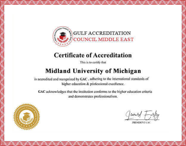 The GCC Accreditation Board is an independent educational quality agency recognized across the GCC and Arab regions. Its mission is to promote superior standards in higher education and offer equivalency services that validate Midland University of Michigan’s global reach.